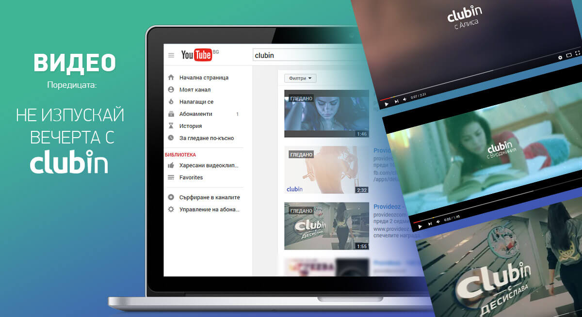 Реализиране на 3 професионално заснети рекламни видеа с акцент "Не изпускай вечерта с Clubin":
