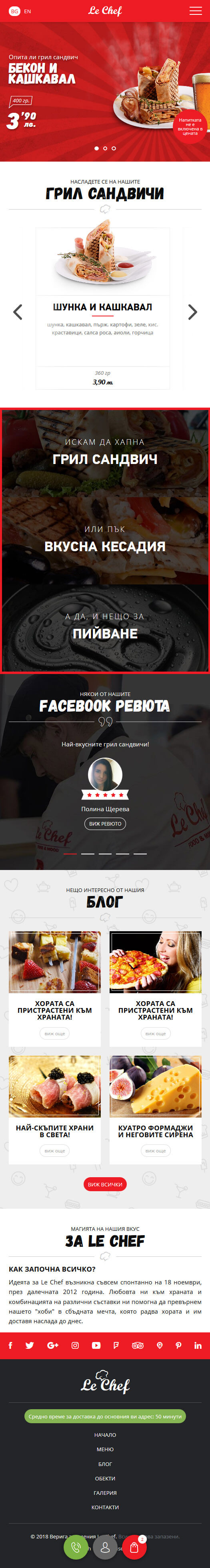 Le Chef са верига заведения за бързо хранене във Варна, които се стремят да са различни и да очароват своите клиенти с многообразие от вкусове и първокласни сандвичи. За тях най-важни са качеството на продуктите, безусловната чистота и вежливото обслужване!