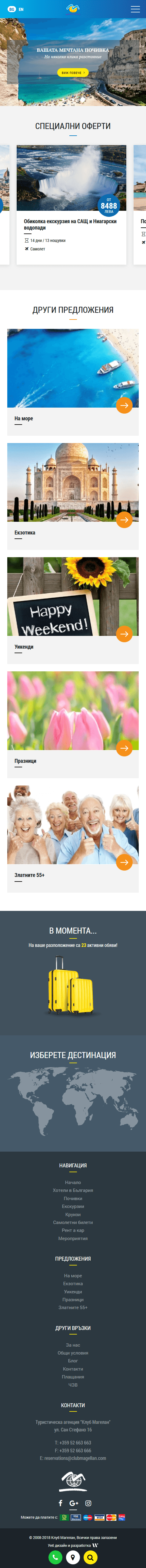 „Клуб Магелан”ООД е туристическа агенция създадена през 2006 година в град Варна. Основана е от специалисти с дългогодишен опит и утвърдени позиции в туристическия бранш. Активно работи и в двете направления – приемащ и изпращащ туризъм.
