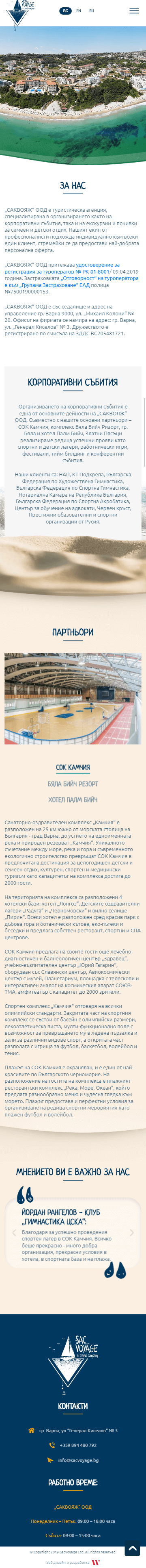 „САКВОЯЖ“ ООД е туристическа агенция, специализирана в организирането както на корпоративни събития, така и на екскурзии и почивки за семеен и детски отдих. Екипът им е съставен от професионалисти, които подхождат индивидуално към всеки техен клиент, стремейки се да предоставят най-добрата персонална оферта.
