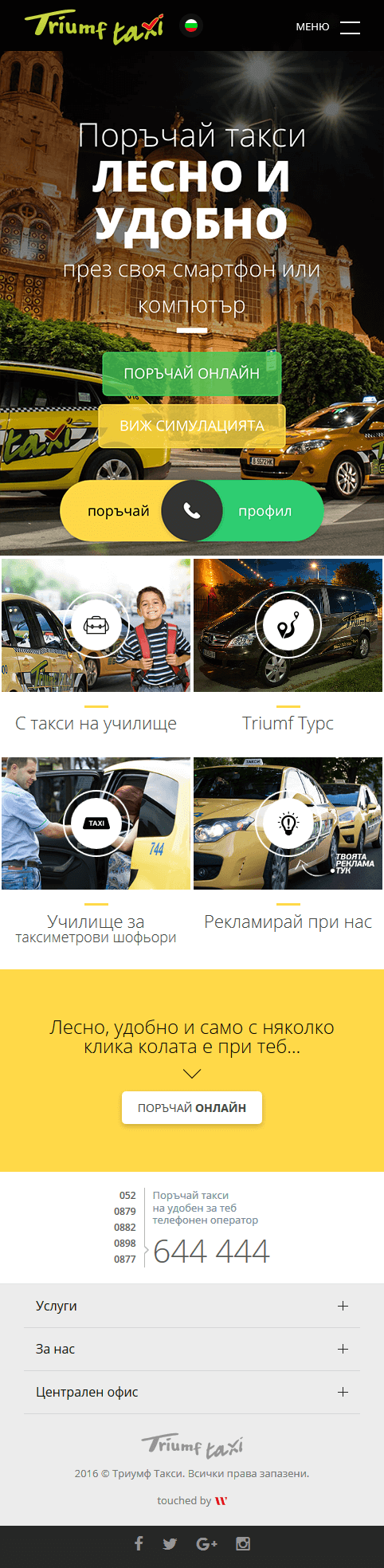 "Триумф Такси" е една от най-бързо развиващите се компании за таксиметрови услуги във Варна през последните години. Разполагат с над 650 автомобила оборудвани с GPS системи, като по този начин се утвърждават като мярка за високо качество в изпълняването на таксиметрови услуги.